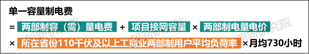 先解釋下什么是單一容量制電價,即除了需要進行容量備份的項目外,一般項目輸配電價不再執(zhí)行“電量電價+容(需)量電價”兩部制,只按照新的容(需)量電費按月繳納。新的容(需)量電費計算方法如下: