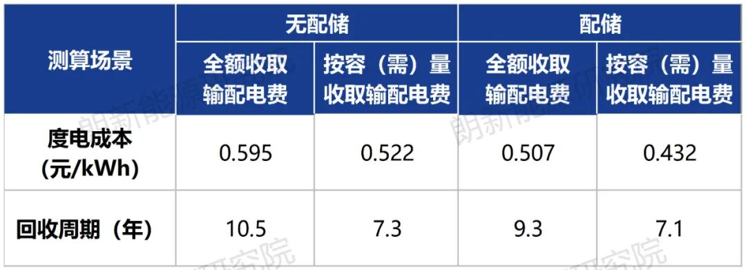 1192號文提到了用戶可自主選擇兩部制或單一容(需)量收費機制,因此本次測算對比了兩種收取輸配電費的方式對項目經(jīng)濟性的影響;此外,650號文中提到“并網(wǎng)型綠電直連項目應(yīng)通過合理配置儲能、挖掘負荷靈活調(diào)節(jié)潛力等方式,充分提升項目靈活性調(diào)節(jié)能力,盡可能減小系統(tǒng)調(diào)節(jié)壓力?!币虼?,本次測算對于配儲前后項目的經(jīng)濟性測算也進行了對比。