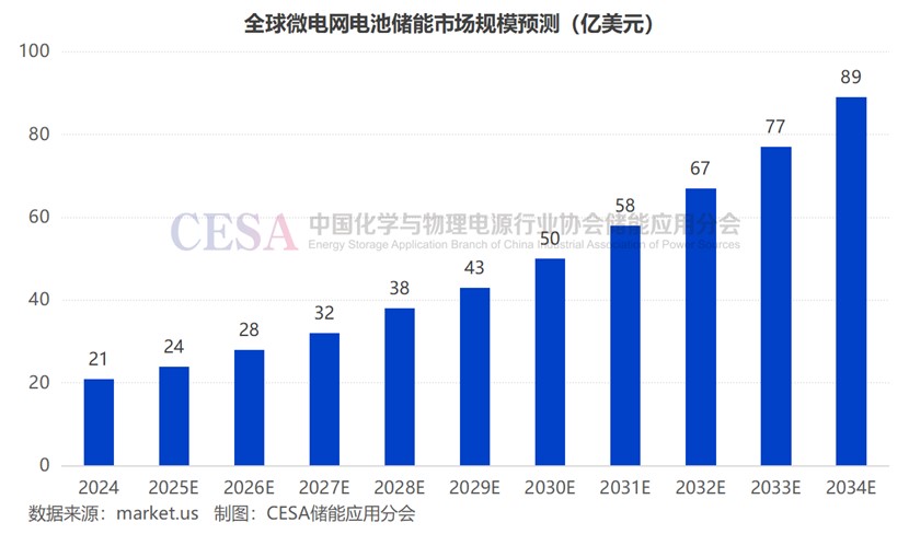 另?yè)?jù)Market.us預(yù)測(cè),全球微電網(wǎng)電池儲(chǔ)能市場(chǎng)將從2024年的21億美元快速增長(zhǎng)到2034年的89億美元,2025–2034年CAGR預(yù)計(jì)達(dá)到15.6%。2024年,亞太地區(qū)是最大市場(chǎng),占比超過(guò)43.9%,市場(chǎng)規(guī)模接達(dá)9億美元。