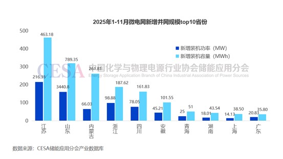 而色達(dá)項(xiàng)目、三江源項(xiàng)目的成功落地并非個(gè)例。據(jù)CESA儲(chǔ)能應(yīng)用分會(huì)產(chǎn)業(yè)數(shù)據(jù)庫(kù)統(tǒng)計(jì),2025年1-11月,國(guó)內(nèi)共有255個(gè)微電網(wǎng)項(xiàng)目并網(wǎng),新增裝機(jī)總規(guī)模為800.17MW/1781.65MWh,同比增長(zhǎng)266.46(功率)/290.53%(容量)。