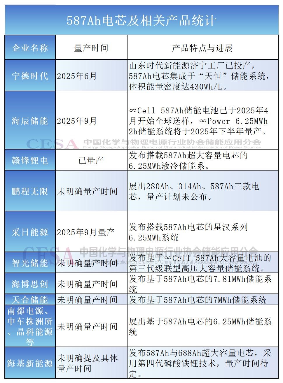 另外,海基儲能、鵬程無限、贛鋒鋰電等鋰電企業(yè)也推出自有587Ah產(chǎn)品。