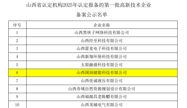 對山西省認(rèn)定機(jī)構(gòu)2025年認(rèn)定報(bào)備的第一批高新技術(shù)企業(yè)進(jìn)行備案的公示