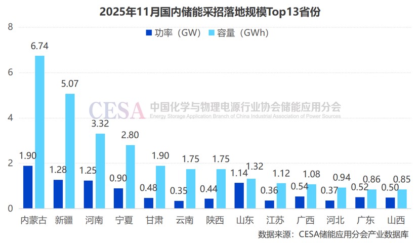 CESA儲能應用分會根據(jù)公開信息不完全統(tǒng)計,2025年11月,儲能系統(tǒng)(含直流側(cè))采招落地規(guī)模為4.18GW/13.36GWh,容量占比約四成。