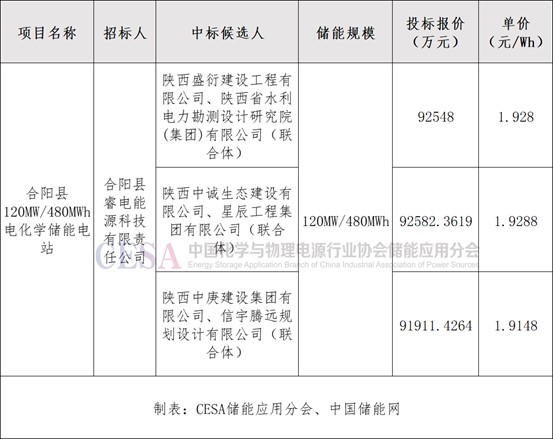 表 合陽縣120MW/480MWh全釩液流電池儲能電站EPC入圍報價