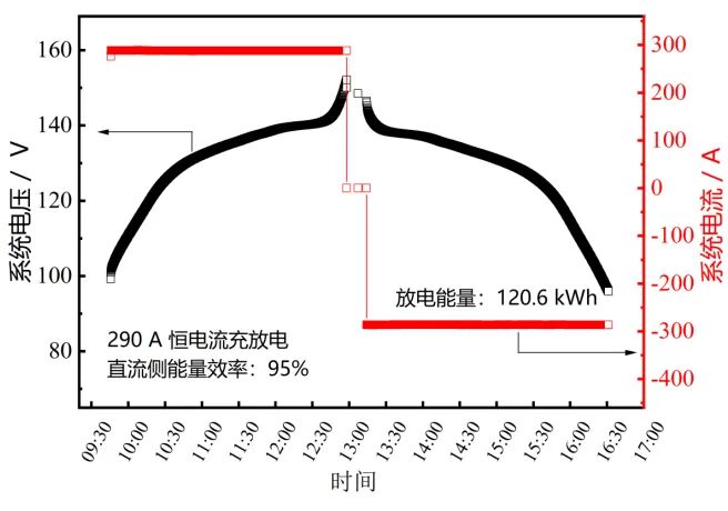 中國儲能網(wǎng)訊:近日,大連化物所儲能技術(shù)研究部(DNL17)李先鋒研究員、鄭瓊研究員團(tuán)隊(duì)開發(fā)出100 kWh級磷酸鹽基鈉離子電池儲能系統(tǒng),并在山東濱州臨港化工產(chǎn)業(yè)園區(qū)實(shí)現(xiàn)并網(wǎng)運(yùn)行。該系統(tǒng)由1000余只36 Ah方殼電芯集成的28個模組,以及配套的電力控制模塊組成。經(jīng)現(xiàn)場測試,在290 A恒流條件下,該系統(tǒng)放電能量為120.6 kWh,直流側(cè)能量轉(zhuǎn)化效率超過95%。該系統(tǒng)部署在濱化集團(tuán)碳三碳四綜合利用項(xiàng)目中,與充電樁共同構(gòu)成了“光-儲-充”體系,在白天光伏大發(fā)時(shí)段可將余電儲存,晚間用電高峰時(shí)段釋放,避免因電網(wǎng)消納能力不足導(dǎo)致的棄光,實(shí)現(xiàn)削峰填谷,降低用電成本。