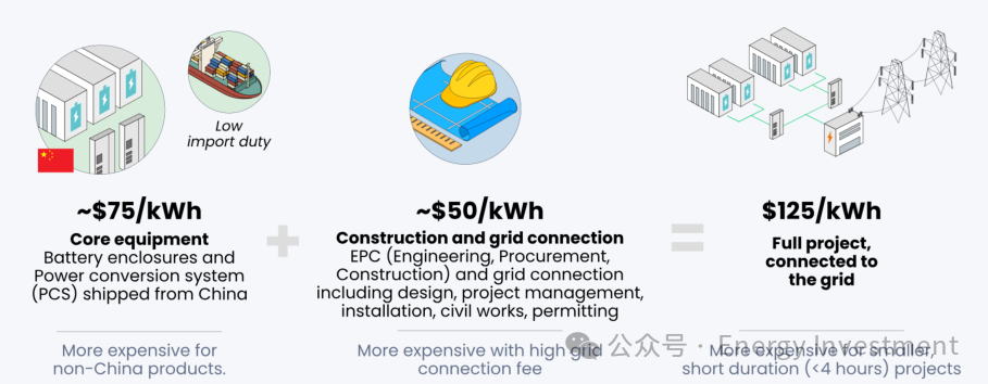 高關稅市場:核心設備成本可達$100/kWh或更高