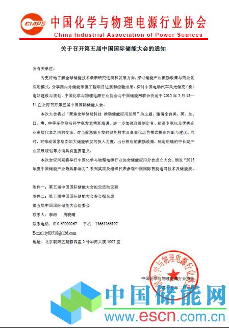 附件三:中國(guó)化學(xué)與物理電源行業(yè)協(xié)會(huì)《關(guān)于召開第五屆中國(guó)國(guó)際儲(chǔ)能大會(huì)的通知》文件