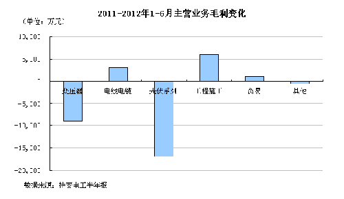 圖1 2011-2012年1-6月主營業(yè)務(wù)毛利變化