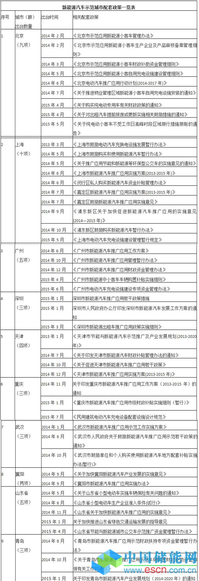 據(jù)第一電動網(wǎng)不完全統(tǒng)計,截至2015年7月24日,在被國家列入新能源汽車推廣應(yīng)用城市(群)的39個城市(群)88個城市中,共有37個城市(群)62個城市出臺新能源汽車配套政策175項。其中,46省市出臺新能源汽車推廣方案明確補貼標準,而北京、上海、天津、重慶、青島、廣東、廣州、佛山、惠州、東莞、山西、江蘇省、南京、揚州、西安、武漢、湖南、??凇⒛喜?、蕪湖、瀘州、成都、廈門、金華、杭州等25個省市出臺了新能源汽車補貼細則。