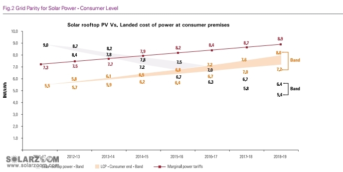 屋頂光伏系統(tǒng)實(shí)現(xiàn)平價(jià)上網(wǎng)的速度將超越公用事業(yè)光伏系統(tǒng)。據(jù)畢馬威透露,在印度部分地區(qū),屋頂系統(tǒng)或許最早將于2014年達(dá)到平價(jià)上網(wǎng)。