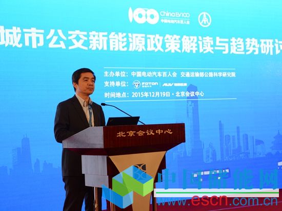 中國(guó)儲(chǔ)能網(wǎng)訊:2015年12月19日,由中國(guó)電動(dòng)汽車百人會(huì)與交通運(yùn)輸部公路科學(xué)研究院聯(lián)合舉辦的“城市公交新能源政策解讀與趨勢(shì)研討會(huì)”在北京召開(kāi),國(guó)務(wù)院發(fā)展研究中心原黨組書記陳清泰、交通運(yùn)輸部運(yùn)輸服務(wù)司副司長(zhǎng)王水平、工業(yè)和信息化部裝備工業(yè)司副巡視員瞿國(guó)春、中國(guó)道路運(yùn)輸協(xié)會(huì)城市客運(yùn)分會(huì)理事長(zhǎng)張國(guó)光、中國(guó)電動(dòng)汽車百人會(huì)執(zhí)行副理事長(zhǎng)歐陽(yáng)明高等參加會(huì)議并講話。