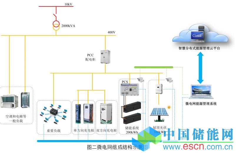 圖二所示為上海國(guó)際汽車(chē)城微電網(wǎng)結(jié)構(gòu)示意圖。該微電網(wǎng)系統(tǒng)具有以下幾個(gè)特點(diǎn):
