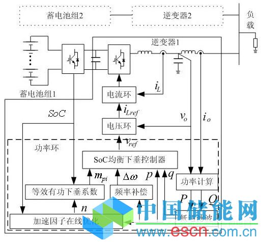 同時,若剩余的BESD受接口逆變器容量限制,無法足量的滿足負(fù)荷功率平衡需求,孤島電網(wǎng)只能甩掉部分負(fù)荷,以維持基本運行。因此,如能在下垂控制中引入具有改善多儲能設(shè)備SOC一致性功能的控制環(huán)節(jié),可以充分利用所配置的BESD容量,擴展功率平衡的時間和提升功率平衡的能力,對保證孤島電網(wǎng)安全穩(wěn)定運行具有重要意義。
