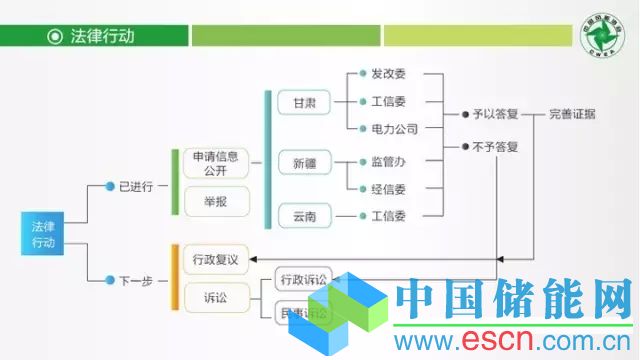 協(xié)會目前已經(jīng)向甘肅、新疆、云南三個地方政府的部門,包括發(fā)改委、工信委,還有電力公司申請信息公開,這是第一步。秦海巖表示,“通過信息公開希望他們能給我們提供一些具體的背景資料,我們根據(jù)這些背景資料可以走下一步的程序,比如申請行政復(fù)議,甚至可以到訴訟階段。當(dāng)然如果不給答復(fù),我們直接可以行政訴訟,因為大家有信息公開法,如果不答復(fù)就違法,直接可以行政訴訟,要求他必須答復(fù)?,F(xiàn)在我們已經(jīng)遞過去,他們都收到了,正在處理中,因為有時限,目前還沒有到時限,我們等時限到了之后,看看答復(fù)的情況。”如果法定時限內(nèi)沒有回復(fù),不排除相關(guān)主體提起行政、民事訴訟的可能。