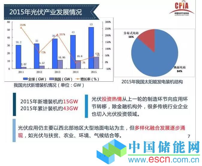 此外,我們要注意到有一個(gè)非常可喜的現(xiàn)象:過(guò)去中國(guó)的光伏裝機(jī)大省都在西北,但是在2015年我國(guó)中東部累計(jì)超過(guò)1GW的省份已經(jīng)達(dá)到了6個(gè),包括江蘇、河北、浙江、山東、安徽、山西,這說(shuō)明光伏特別是分布式光伏的發(fā)展正在導(dǎo)入比較快的發(fā)展時(shí)期,特別是江蘇、浙江和廣東三大地區(qū)。
