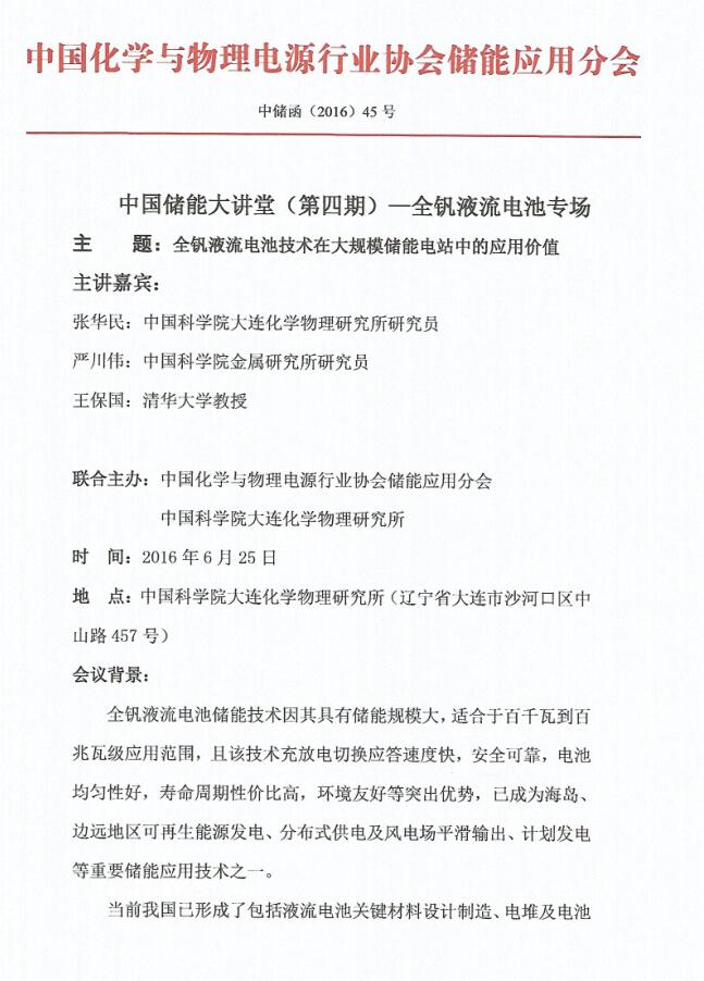 中國(guó)儲(chǔ)能大講堂(第四期)—全釩液流電池專(zhuān)場(chǎng)