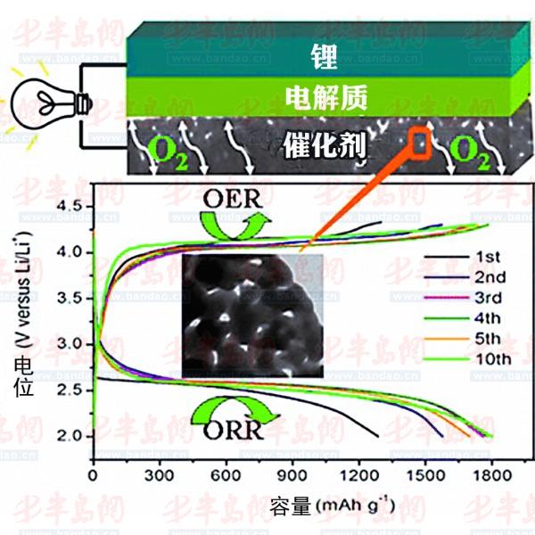 那電池的“呼吸”是怎樣完成的呢?這就不得不提到該團隊的研究核心——催化劑。在該團隊研究的鋰空氣電池示意圖中記者看到,這種電池分為三層,鋰、電解質、催化劑。氧氣就是在催化劑層進入電池跟鋰離子反應的,“電解質的作用就是讓鋰離子能順利通過但是又不至于造成正負極的短路。”而能讓鋰和氧氣“聯(lián)姻”的關鍵,則是催化劑層。
