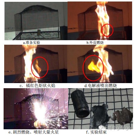 科研人員實驗表明由于鋰電池內(nèi)部溫度升高,內(nèi)部發(fā)生熱失控反應(yīng),產(chǎn)生氣體使得鋰電池正極發(fā)生泄漏,從而形成小型的橘紅色炬狀火焰;與此同時電池內(nèi)部的電解液開始噴出并發(fā)生燃燒,很快形成強烈的火焰;之后正極處產(chǎn)生大量的白色火星并發(fā)出噼里啪啦的聲響,釋放出大量氣體并且劇烈燃燒。在幾秒內(nèi)這種現(xiàn)象速度加快,并發(fā)生爆炸性反應(yīng),產(chǎn)生巨大聲響。鋰電池燃燒時最高溫度可達700多度,可見燃燒反應(yīng)的激烈程度。
