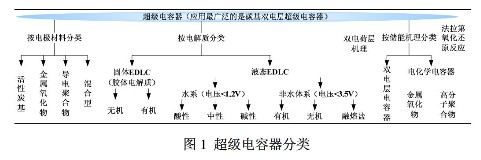 圖1和圖2分別介紹了超級電容器的分類以及不同超級電容的一些參數(shù)比較。