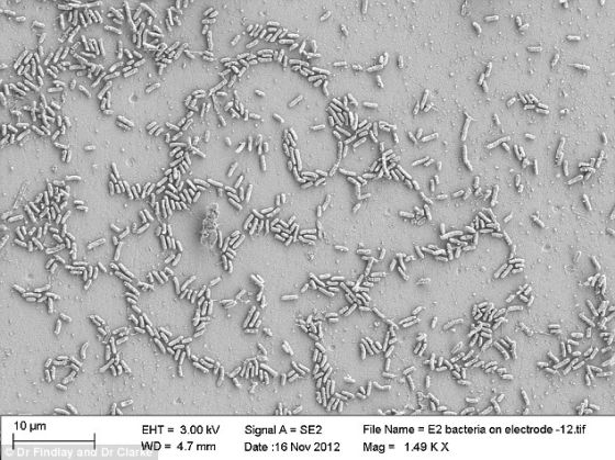 英國(guó)東安格利亞大學(xué)的生物學(xué)家湯姆-克拉克博士說(shuō):“我們知道細(xì)菌能轉(zhuǎn)移金屬和礦物質(zhì)里的電子,這種互動(dòng)主要取決于細(xì)菌體表的特殊蛋白。但是目前我們還不清楚,這些蛋白是直接還是間接通過(guò)環(huán)境中一種我們不知道的介質(zhì)做到這些的。我們的研究顯示,這些蛋白質(zhì)能夠直接‘接觸’礦物質(zhì)表面,并產(chǎn)生電流,這表明細(xì)菌可能是依附在金屬或者礦物質(zhì)表面,通過(guò)它們的細(xì)胞膜傳導(dǎo)電流的。事實(shí)上這是我們第一次觀測(cè)到細(xì)菌細(xì)胞膜的組成成分是如何與不同物質(zhì)發(fā)生互動(dòng)的,并首次了解了金屬和礦物質(zhì)在細(xì)胞表面發(fā)生的互動(dòng)存在多大差異。這些細(xì)菌展現(xiàn)出作為微生物燃料電池的巨大潛能,它們可以通過(guò)分解家庭或者農(nóng)業(yè)廢料產(chǎn)生電流。”