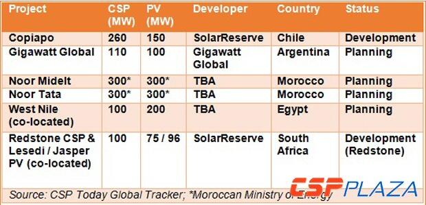 表:在開發(fā)或規(guī)劃中的光熱-光伏混合發(fā)電項(xiàng)目(2016年6月)