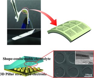 中國儲能網(wǎng)訊:可印制的、彎曲的且具有“記憶性”的高分子電解質(zhì)。圖片:Advanced Materials