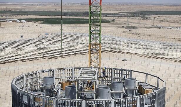 中國儲(chǔ)能網(wǎng)訊:裝機(jī)121MW的Ashalim1塔式光熱電站位于以色列在內(nèi)蓋夫(Negev)沙漠,這座塔式光熱電站總占地面積為3.15平方公里,場地中央矗立著Ashalim塔,高240米——是世界上最高的集熱塔,塔底將安裝約5.5萬面鏡子,占地面積約400個(gè)足球場大小,這一浩大的工程構(gòu)成了沙漠中的一幅奇景。