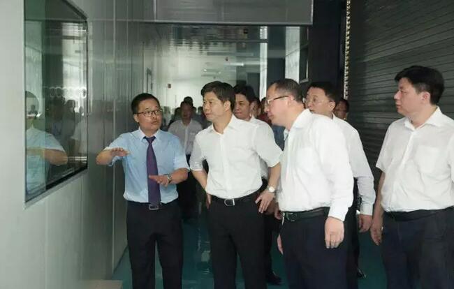 圖12:市委書記李薦國、市委副書記、市長(zhǎng)楊懿文一行及與會(huì)嘉賓參觀三迅生產(chǎn)線