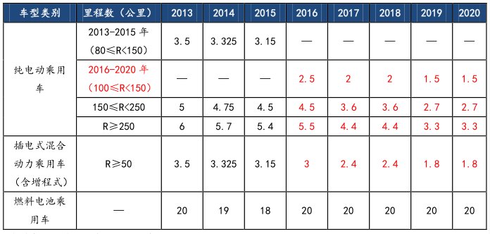 表 5:2013-2020 新能源汽車補(bǔ)貼標(biāo)準(zhǔn)