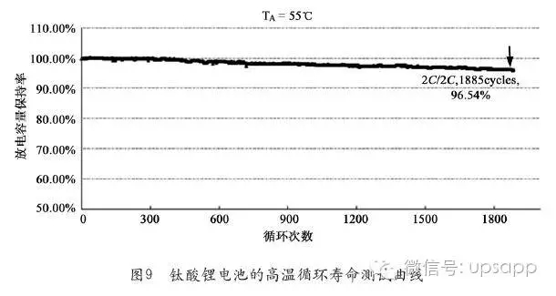 長壽命。鈦酸鋰單體電芯的循環(huán)壽命長達2.5萬次以上,圖9和圖10分別給出了鈦酸鋰電池高溫循環(huán)壽命測試曲線和室溫循環(huán)壽命測試曲線;