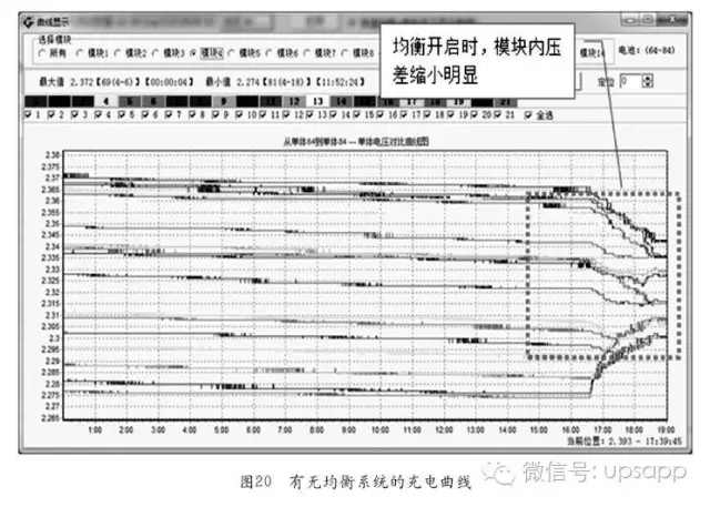從圖20可以看出300Ah電池組220只單體電芯在開啟BMU均衡的時候,單體電壓從分散的狀態(tài)逐漸趨于集中,表明單體均衡功能有效。