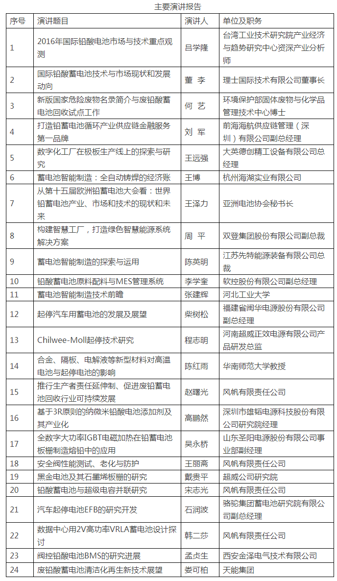 中國(guó)化學(xué)與物理電源行業(yè)協(xié)會(huì)于12月15-16日在西安舉辦的“2016年中國(guó)國(guó)際鉛酸蓄電池高峰論壇”,邀請(qǐng)了24位專(zhuān)家與大家分享在鉛酸蓄電池市場(chǎng)與新技術(shù)進(jìn)展、自動(dòng)化改造和智能制造、回收再生利用等多個(gè)領(lǐng)域的最新進(jìn)展和應(yīng)對(duì)之策。