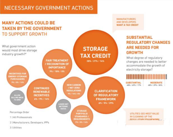 受訪的能源專業(yè)人士呼吁政府給予儲能更多的支持,其中最重要的有2條:1)給予儲能技術稅收優(yōu)惠,給儲能技術以補貼的實惠;2)在監(jiān)管體系中明確儲能的地位,給儲能一個名份。