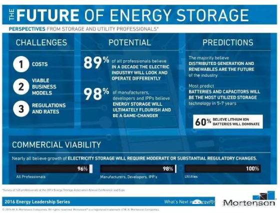 中國儲能網(wǎng)訊:美國知名的能源基礎設施建設承包公司Mortenson最近發(fā)布了一份調(diào)查報告,采訪了165位能源界專業(yè)人士,對儲能技術面臨的挑戰(zhàn)、潛力和未來進行了評估。