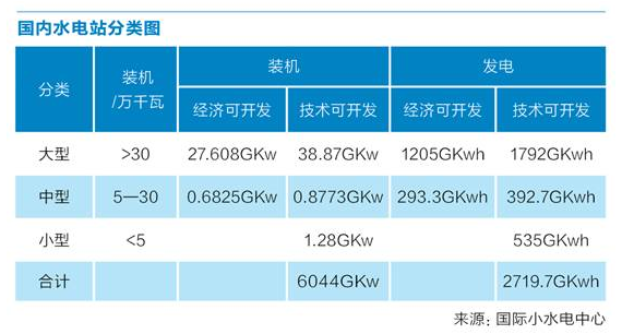 電力行業(yè)對水電規(guī)模以單站裝機容量大小界定,單站容量大于30萬千瓦為大型水電,單站容量5萬—30萬千瓦為中型水電,單站容量5萬千瓦以下的則為小型水電。