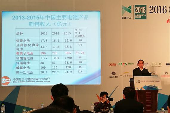 行業(yè)各類電池的一些整體的情況,從數(shù)量上來說鋰離子電池去年增長非???,大概54.9%,當然包括了動力電池,這是電池行業(yè)主要產(chǎn)品他的一些銷售情況。發(fā)展最大領(lǐng)域可能還是鉛酸電池,傳統(tǒng)領(lǐng)域有1400億規(guī)模,鋰離子電池的話我們銷售收入去年增長37.7%,達到了985億元。整個鋰離子電池去年是發(fā)展機會,各家出現(xiàn)供不應求的局面,主要在國家政策支部下,新能源汽車的快速發(fā)展。