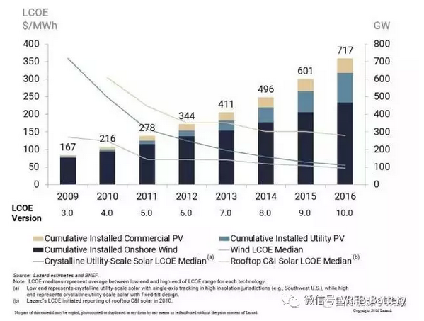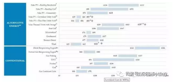 中國儲(chǔ)能網(wǎng)訊:美國咨詢公司Lazard每年評(píng)估美國各類能源發(fā)電的全生命周期平準(zhǔn)成本(LCOE),2016年12月15日公布了第10個(gè)LCOE版本。