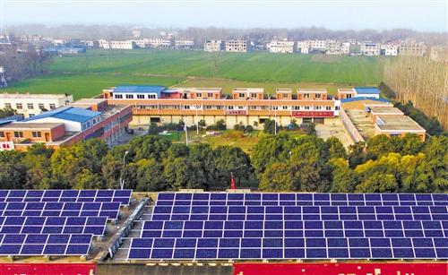 中國儲能網訊:河南項城建設在鄉(xiāng)鎮(zhèn)公共露天場地的太陽能電池板。當?shù)匕压夥l(fā)電項目作為綠色能源與產業(yè)扶貧措施結合起來,在全市15個鄉(xiāng)鎮(zhèn)42個貧困村的公共露天場地實施安裝光伏發(fā)電。據(jù)測算,按照分紅形式,每個貧困戶每年可增加收入3000元。時初鵬攝