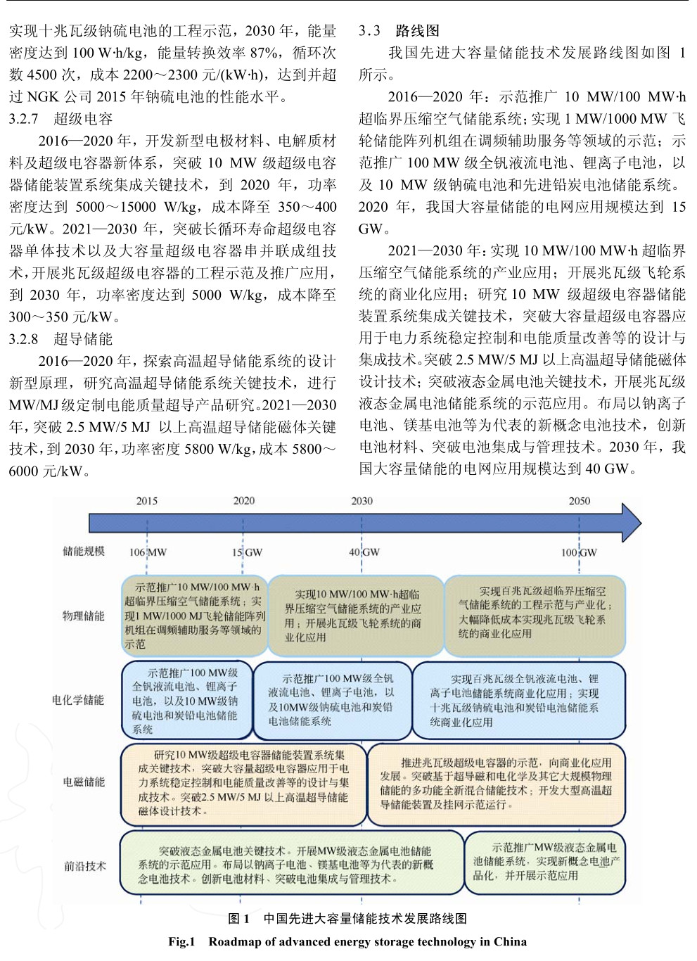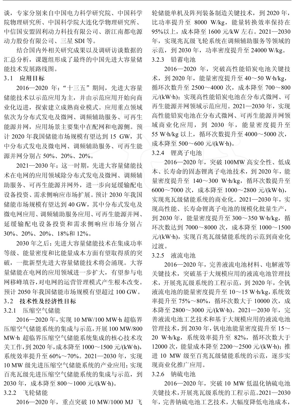 本文著眼于電網(wǎng)應用,首先分析了儲能技術及發(fā)展現(xiàn)狀,其次分析了先進大容量儲能技術及其技術經濟特性,在此基礎上,采用專家研討會、調查問卷或面訪等多種形式,結合國內外相關研究成果以及調研訪談數(shù)據(jù),從儲能技術應用規(guī)模、技術特性、經濟性等方面,提出2016—2020、2021—2030及2030年以后我國適用于電網(wǎng)的先進大容量儲能技術發(fā)展路線圖。