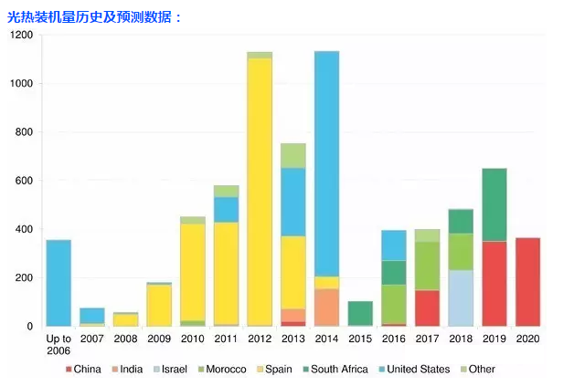 光熱裝機(jī)量歷史及預(yù)測數(shù)據(jù):