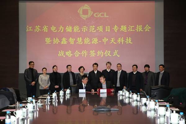 中國(guó)儲(chǔ)能網(wǎng)訊:2月23日,江蘇省電力儲(chǔ)能示范項(xiàng)目專題匯報(bào)會(huì)暨協(xié)鑫智慧能源-中天科技戰(zhàn)略合作簽約儀式在蘇州協(xié)鑫能源中心舉行。在江蘇省經(jīng)信委副主任李強(qiáng)等領(lǐng)導(dǎo)的見證下,協(xié)鑫電力集團(tuán)執(zhí)行總裁王世宏、協(xié)鑫智慧能源分布式能源事業(yè)部總裁徐庭陽(yáng)分別與中天儲(chǔ)能科技有限公司總裁薛馳、總經(jīng)理繆永華簽署了戰(zhàn)略合作框架協(xié)議和協(xié)鑫智慧能源10MWh鋰電儲(chǔ)能項(xiàng)目商務(wù)合同。