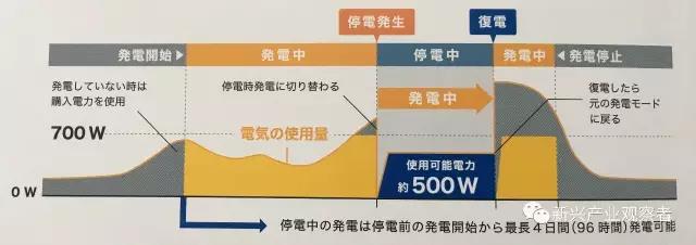 松下還給出了燃料電池系統(tǒng)在停電狀況下作為應(yīng)急電源的表現(xiàn),最長可以提供四天96小時的供電時間,這與日本電器產(chǎn)品事事考慮自然災(zāi)害的傳統(tǒng)有關(guān),但也提供了分布式能源的新思路。
