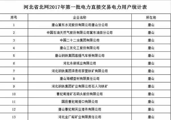按照國家有關(guān)電力市場交易的規(guī)定,現(xiàn)將河北省北網(wǎng)2017年符合參加電力直接交易準入資格的電力用戶和發(fā)電企業(yè)名單(第一批)予以公示(見附表),接受社會各界監(jiān)督,如有異議,可通過來訪、來函、來電等形式實名向我委反映情況和意見。