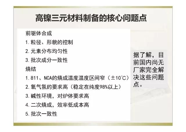 如果說現(xiàn)在什么電池材料最火,恐怕就是高鎳三元材料了。相比磷酸鐵鋰和低鎳三元材料,高鎳三元材料由于鎳元素比例的提高,在比能量上有更大的優(yōu)勢(shì)。從333、532,到622、711到811(鎳、鈷、錳三者的比例),近年隨著研發(fā)的投入,三元材料高鎳進(jìn)程“根本停不下來”。