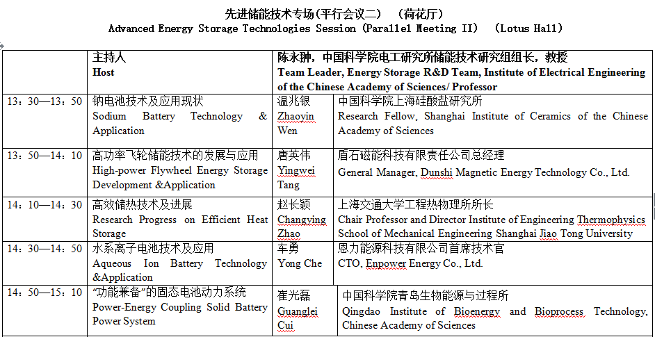 以下為先進(jìn)儲(chǔ)能技術(shù)專場具體議程安排。