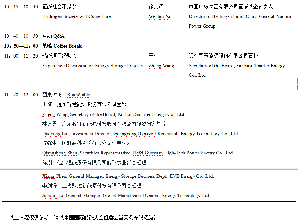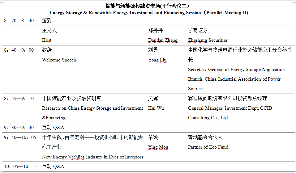 以下為儲(chǔ)能與新能源投融資專(zhuān)場(chǎng)具體議程安排。