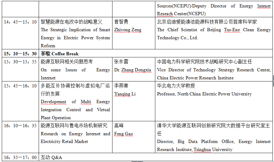 Electricity Reform &Smart Energy Session (Parallel Meeting III) Peony Hall