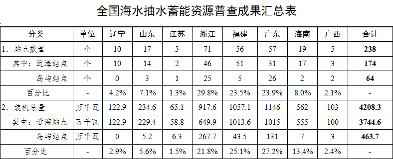 1.全國海水抽水蓄能資源普查成果匯總表