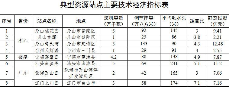 在上述資源普查站點基礎上,考慮地形條件、工程布置、節(jié)約淡水資源等多方面因素,進一步篩選出建設條件相對較好的8個典型站點,分布在浙江、福建、廣東3省,作為下一步研究重點。(具體見附件2)