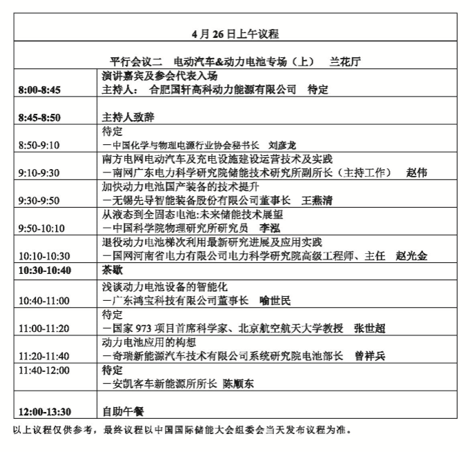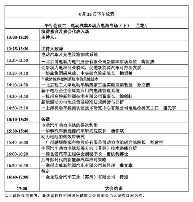 以下為電動(dòng)汽車暨動(dòng)力電池專場(chǎng)具體議程安排。